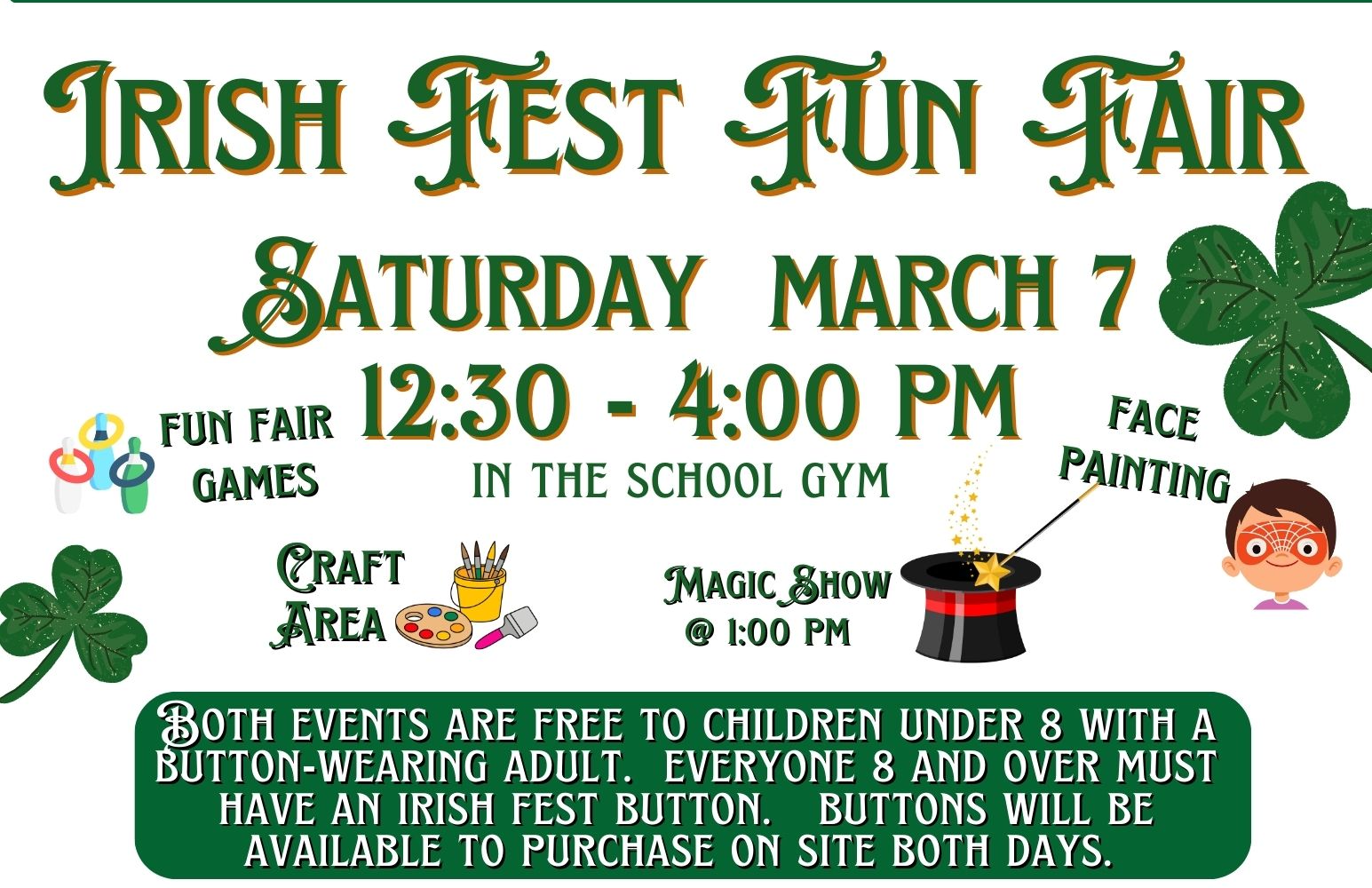 Saturday, 12:30 -4:00 PM:  All ages Family Fun Fest. MIF button required for entrance. Under 8 yrs free.